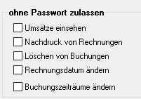 So wie ich verstehe wenn eine neues Passwort vergeben ist, kann nur ich als Administrator diese Felder ansehen oder löschen. Mein Test hat ergeben, dass die Mitarbeiterin trotz des neues Passwortes, mit Ihrem Passwort die die Umsätze ersehen kann. Wie kann ich das ändern, so dass Sie die Umsätze nicht ansehen kann. | |