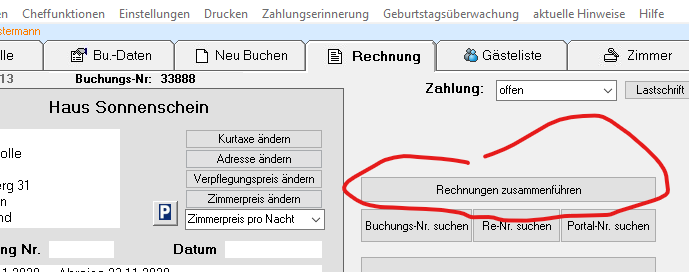Bei zusammengefassten Rechnungen stehen zwar die Zimmer auf der Rechnung, aber die Endsumme ist falsch (Endsumme ist nur von einem Zimmer).